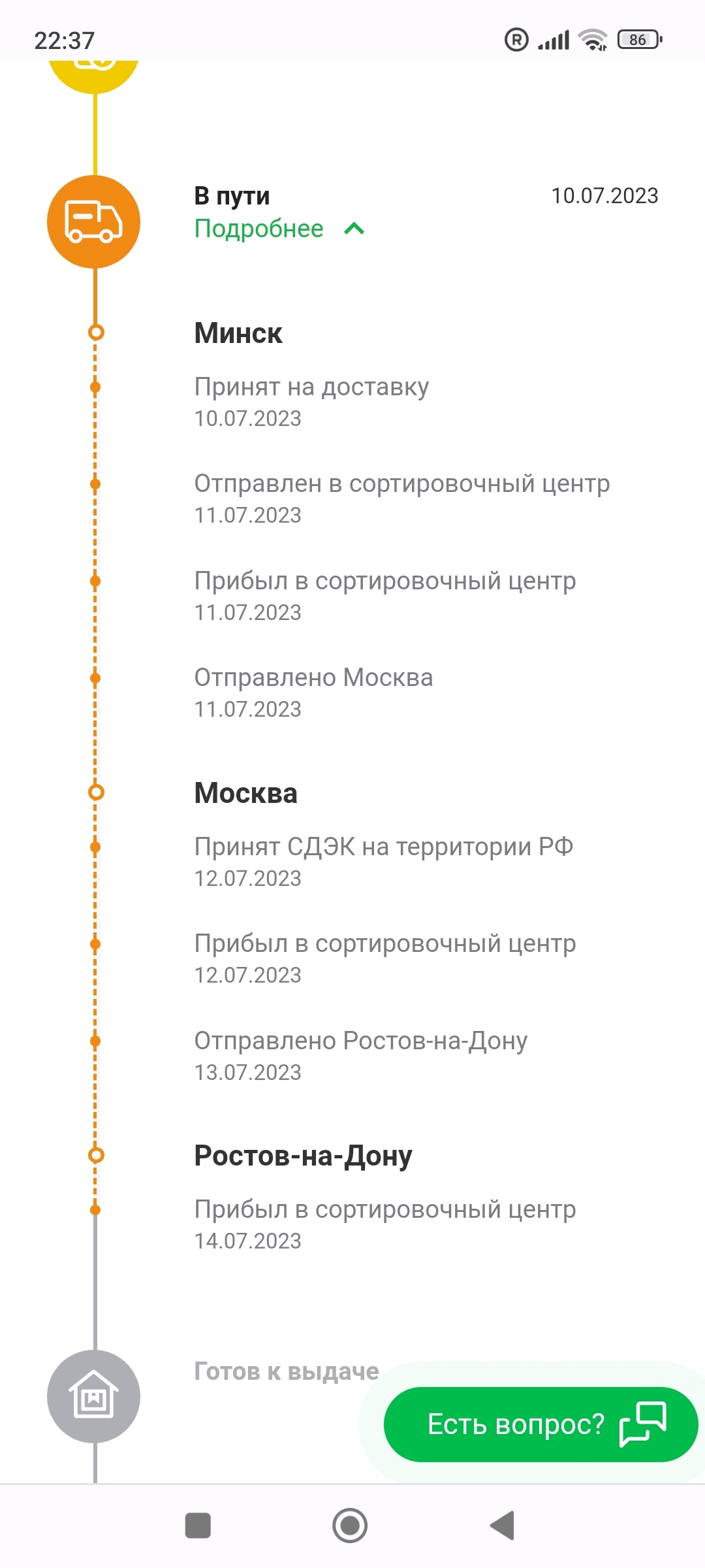 Так бодро началась доставка, что я даже обрадовался. Ан нет, всё пошло как и предсказывалось. Оправдания в службе поддержки сводились к фразам "Ну были же выходные", а на мой ответ, что груз прибыл в пятницу с утра и что пятница и понедельник выходными не являются замолкают... Пообещали отправить с ближайшим рейсом, но только не знают когда он вообще будет. Вопрос к СДЭКу, у Вас там всё нормально?