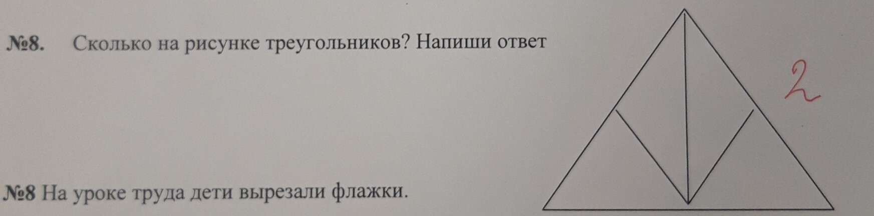 А вот задание по математике из той же серии работ, если что, правильный ответ 7. Кто-то здесь видит какие-то другие треугольники, кроме одного с огромной стрелкой посередине?