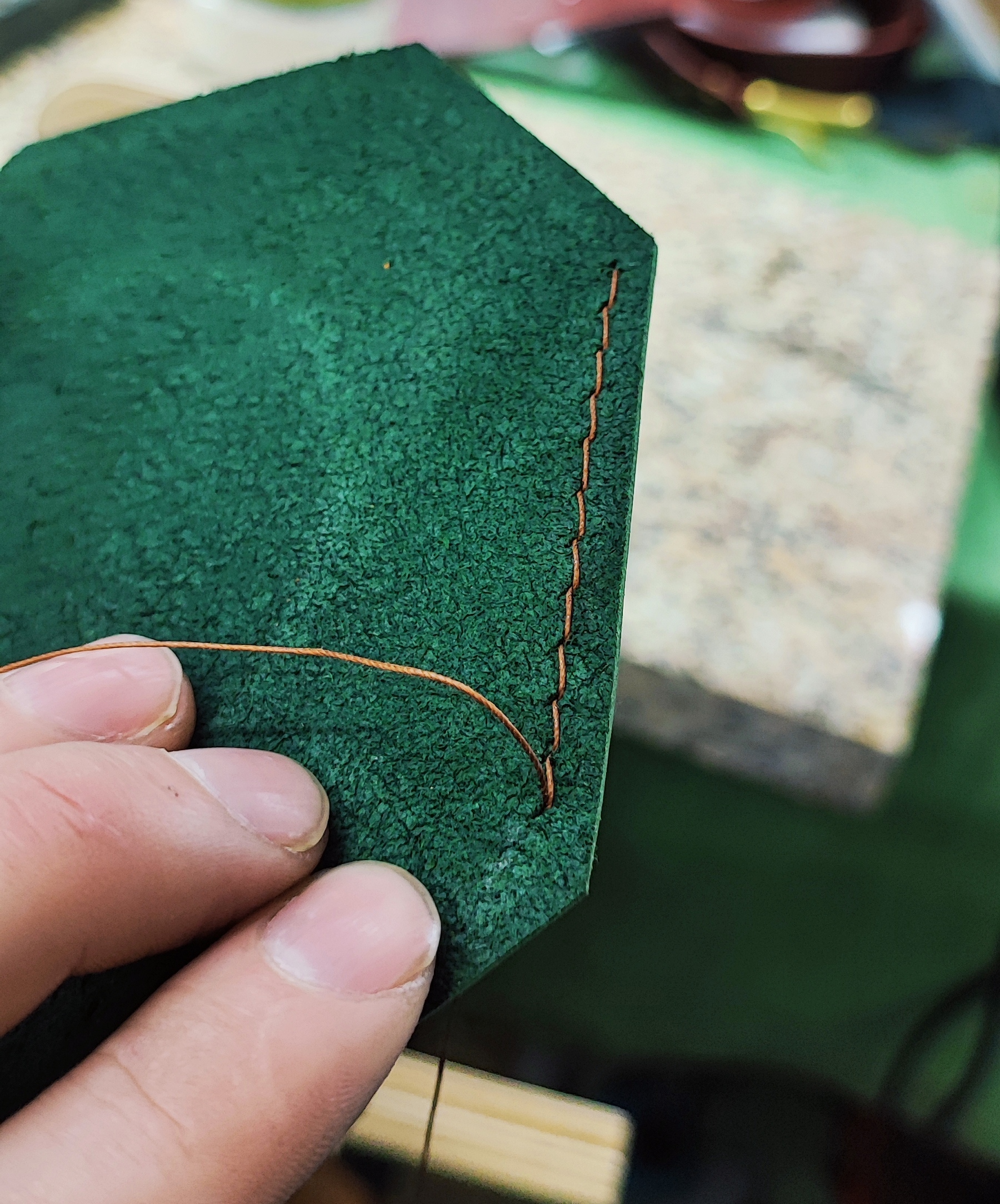 Есть ещё пробойники ромбовидные, японского типа. Принцип шитья в общем такой же, как с французами.