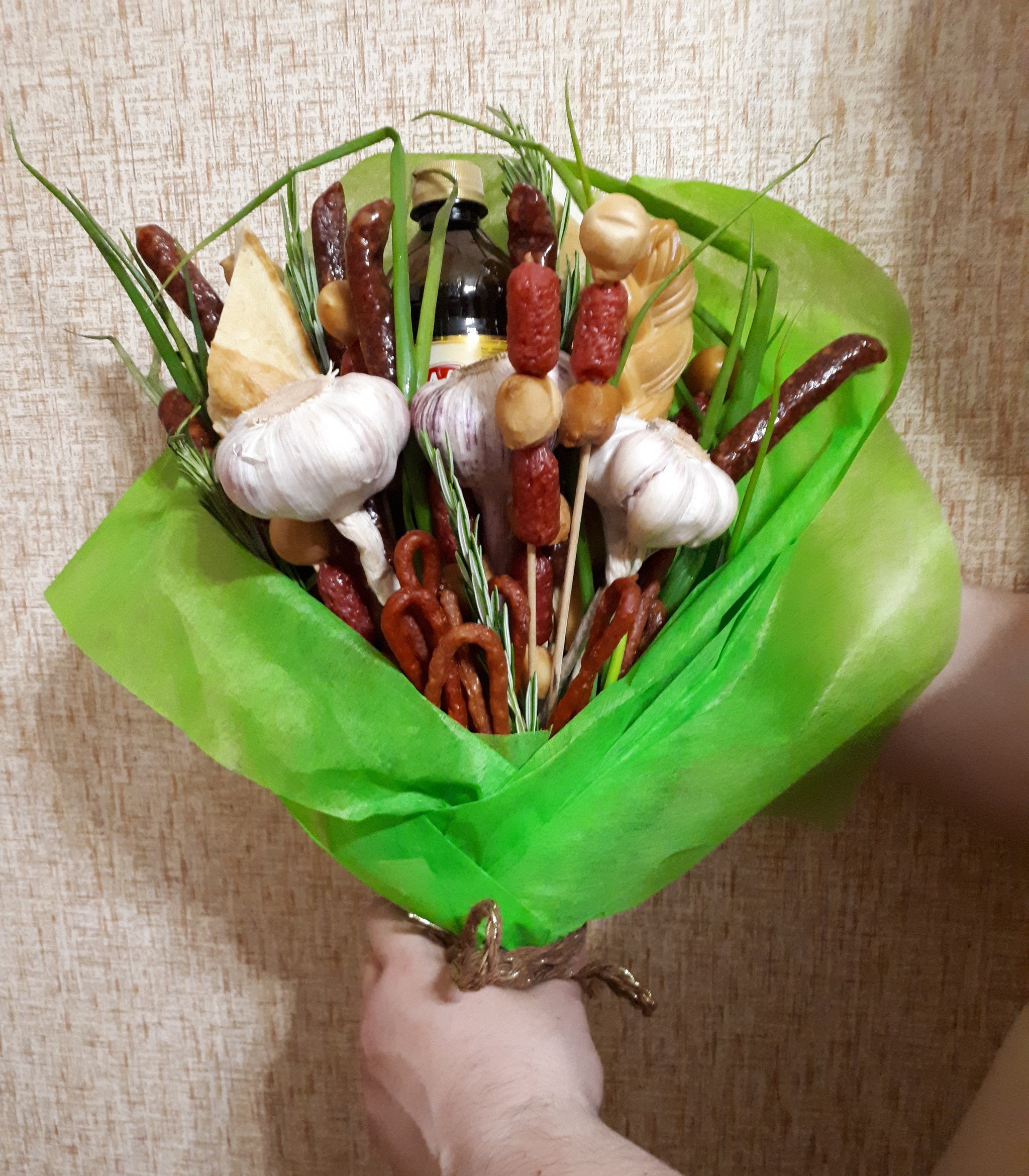 5 Kompotik87 Съедобный букет 6 лет назад У папы был день рождения, а поскольку ему никогда ничего не нужно, у него все есть, решила порадовать его вкусненьким) в середине квас, поскольку папа не пьет. Обычно в середку вставляют пиво. [моё] День рождения Подарки