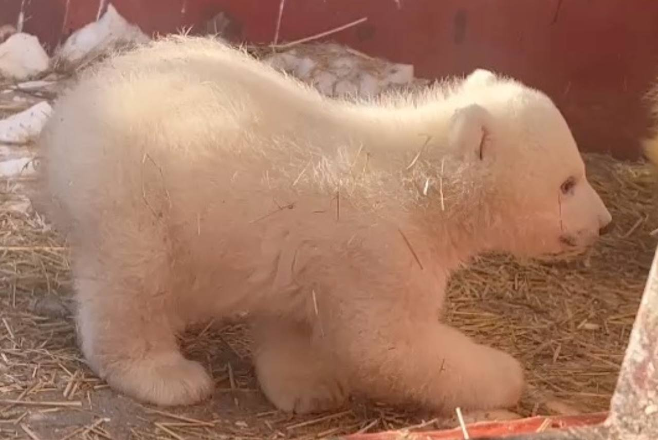 Специалисты зоопарка провели первичный осмотр медвежонка, и узнали пол малыша, который родился у пары полярных хищников несколько месяцев назад.