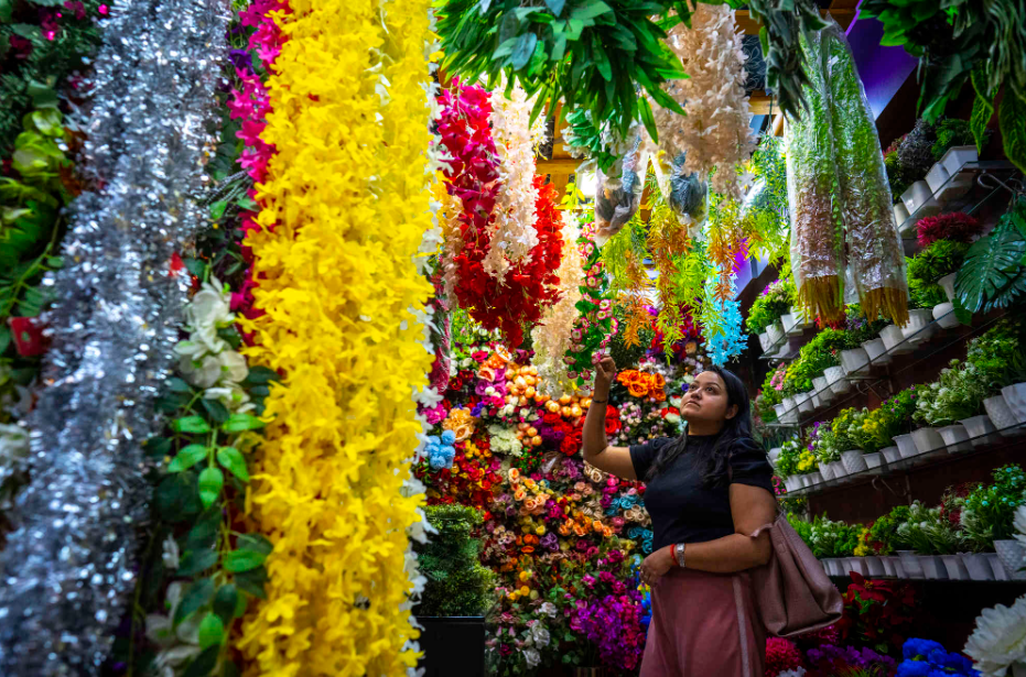 В Индии женщина пришла выбрать себе искуственные цветы.