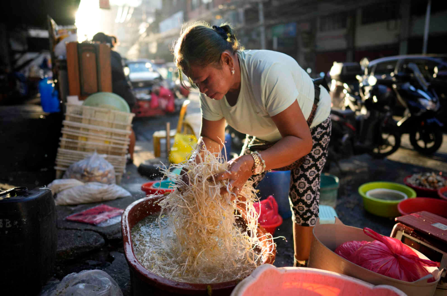 На Филиппинах женщина подготовила к продаже ростки фасоли.
