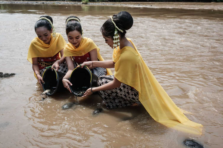 В Индонезии во время буддистского праздника выпустили на волю рыб.