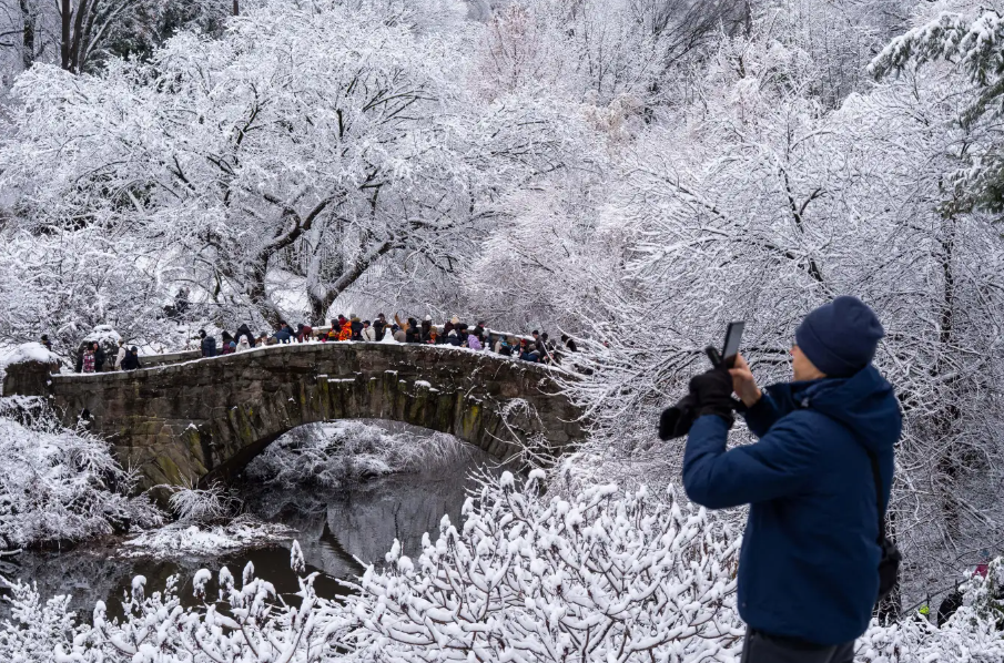 В Нью-Йорке все пошли любоваться снегом в Центральном парке.