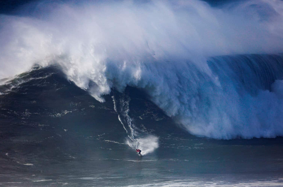 В Португалии серфер прокатился на волне.