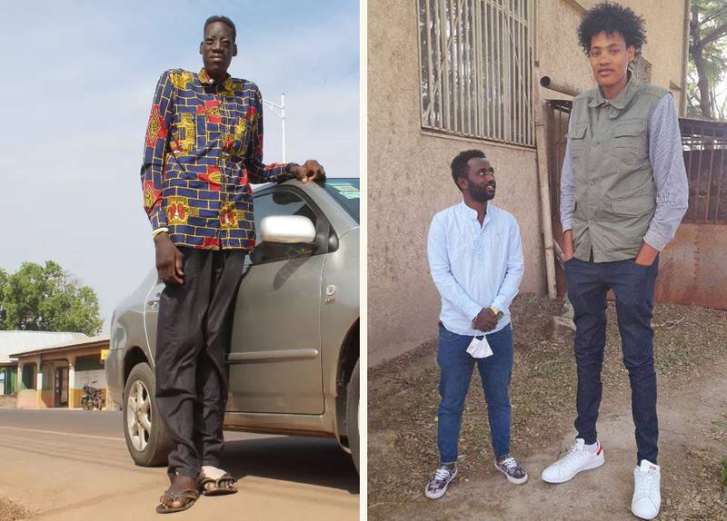 В Африке пока еще заочно схлестнулись Сулемана Абдул Самед из Ганы (слева) с уже знакомым вам эфиопцем Негевой Джимом. Спорят кто из них выше. Рост колеблется от 2.23 до 2.89 (!).