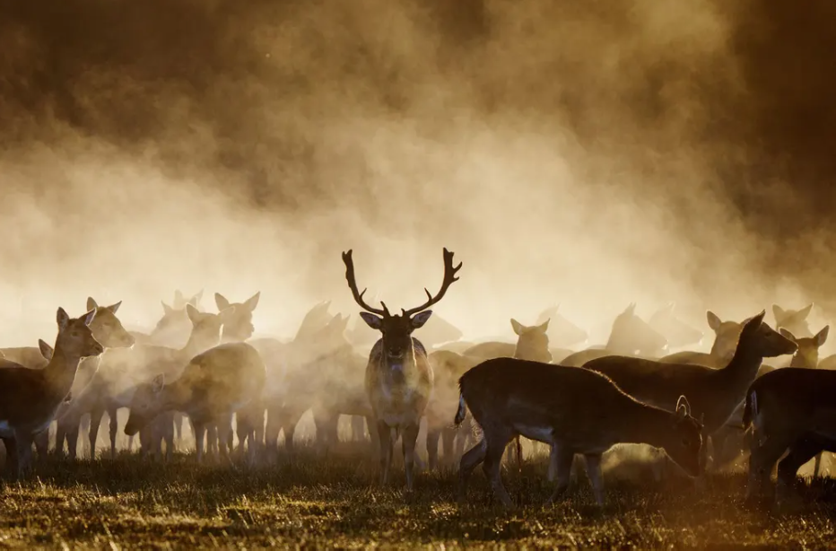 В Дании заметили красивых оленей.