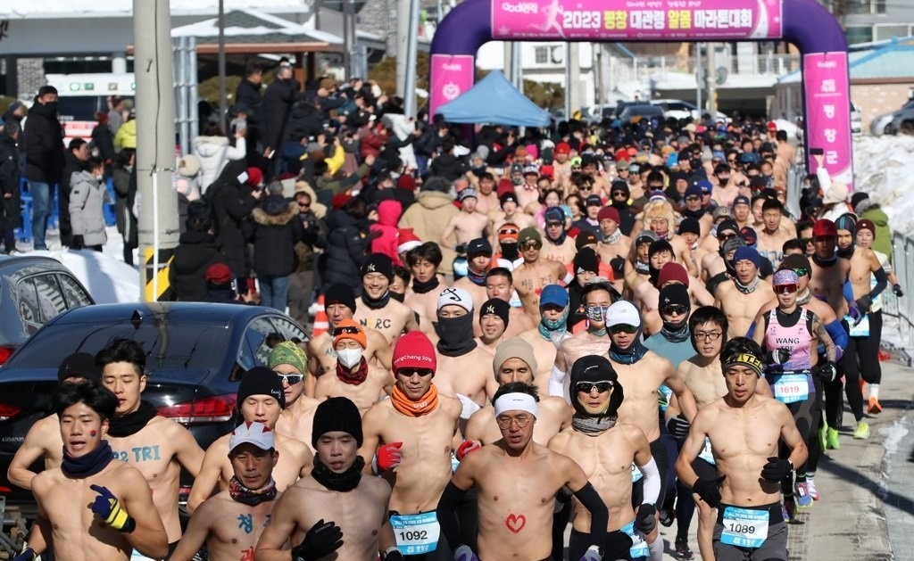 В Южной Корее прошел "Голый марафон". Кажется, участвовали только мужчины.