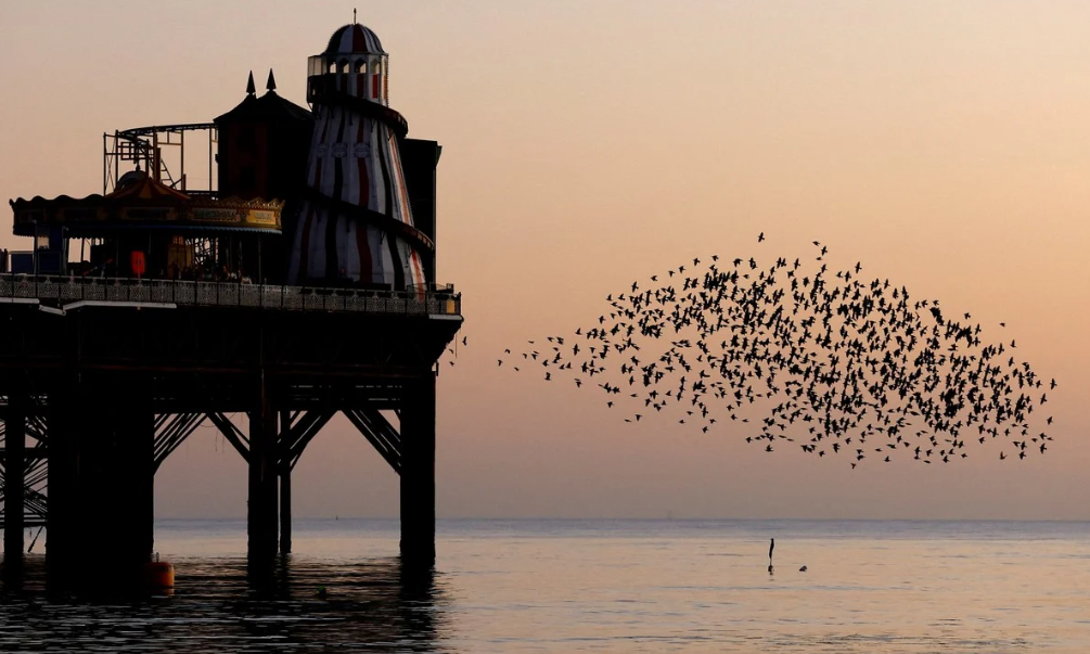 В Великобритании сфотографировали стаю скворцов на закате. Говорят, что изучение особенностей полета скворцов позволило одному ученому получить Нобелевскую премию.