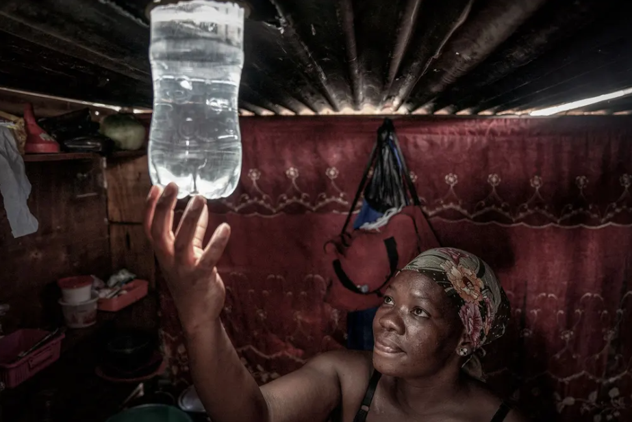 В ЮАР женщина сделала светильник из бутылки с водой и отбеливателем (тут прошу помощи знатоков - что за технология такая??).
