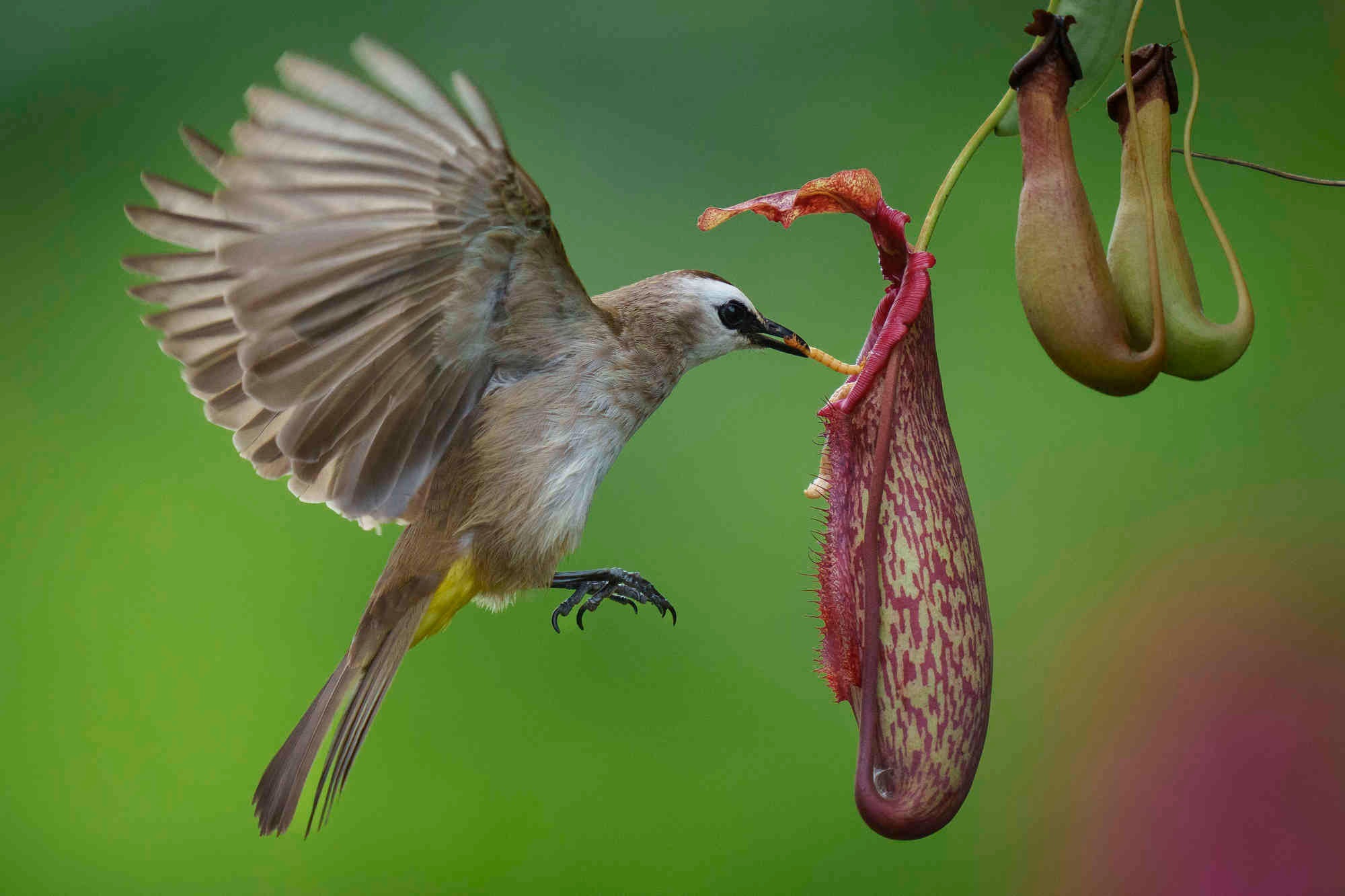 В Малайзии птичка (гугл перевел ее название как "Бюльбюль с желтым отверстием") поела червячка.