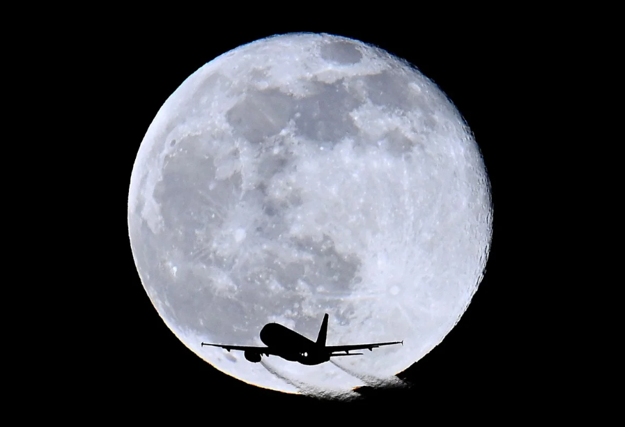 В том же самом городе сделали красивую фотографию Луны и самолета.