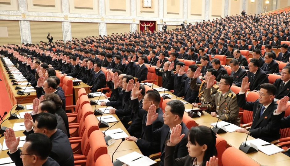 В Северной Корее на съезде партии прошло голосование по важному вопросу. Похоже на школьный урок - на первых партах все с поднятыми руками, а дальше кто-то задумчиво смотрит в сторону, кто-то что-то пишет...