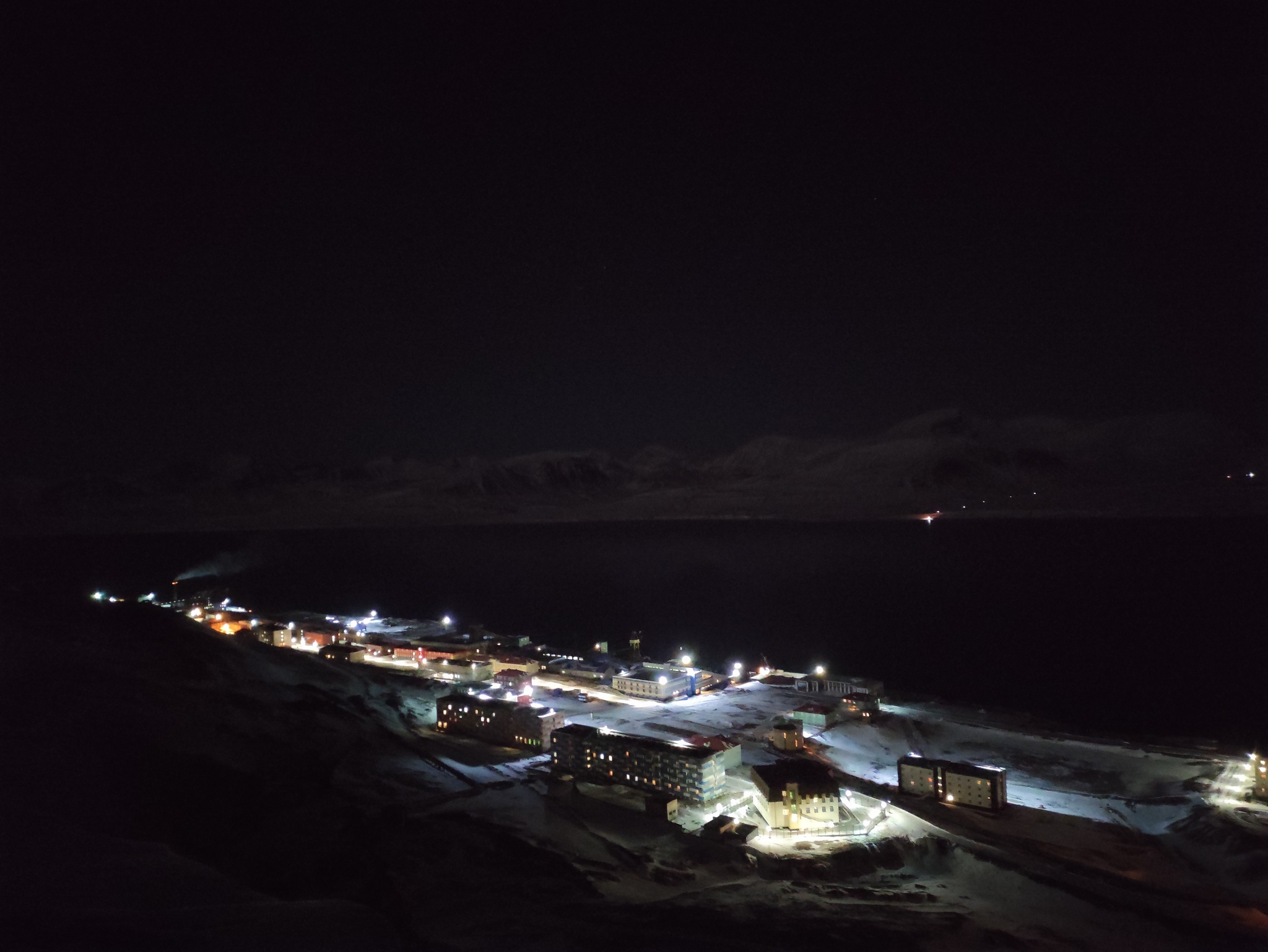 Полярная ночь в самом разгаре. Неделю назад днём горы совсем немного подсвечивались солнцем, сейчас уже нет.