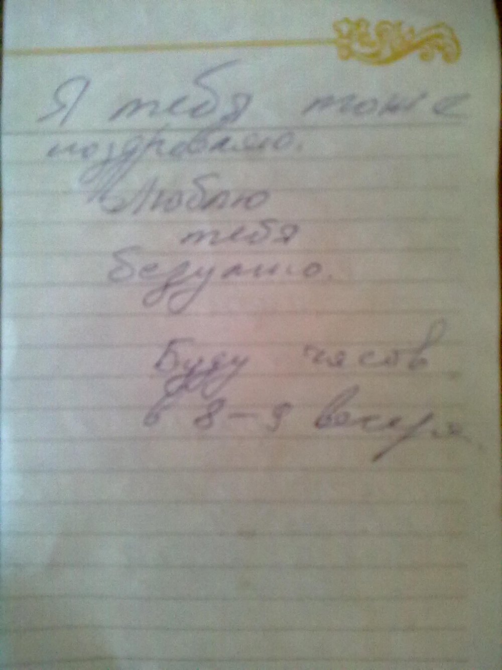 139 Sapphire 13 лет назад Сегодня у моих родителей 27 лет совместной жизни :) Утром у них не было возможности поздравить друг друга, и поэтому мама оставила записку, а папа в скором времени ответил и уехал на работу:) p.s. sry за качество Пикабу