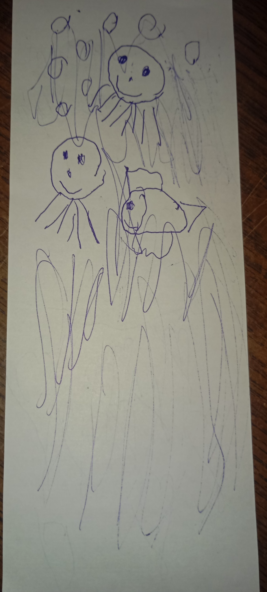 YriyOtradnoe Сегодня утром. Творчество Ирины 8 месяцев назад Медузы и рыбка🙂 Дочь с ограниченными возможностями здоровья. У неё интеллектуальные нарушения и она видит этот мир по своему... Старается быть позитивной девочкой!🙂 [моё] Инвалид Особенные люди Рисунок Дети Медузы Рыба Длиннопост Ещё 0