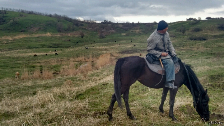 6 DELETED Сегодня в поисках молочных ферм заехал в горы 10 лет назад Увидел пастуха на коне, оставил машину и пошел на гору. Позади него коровы пасутся. [моё] Кавказ Пастух Фотография Горы Красота Лошади Пастбище