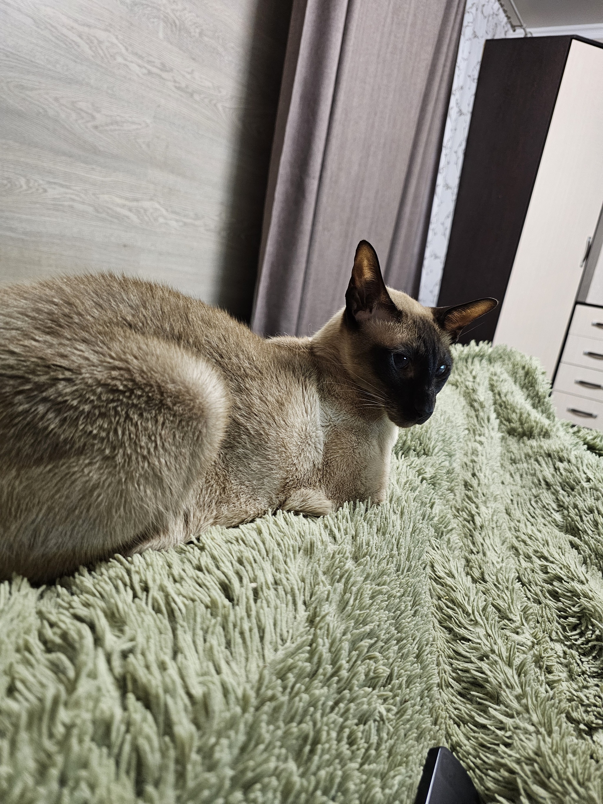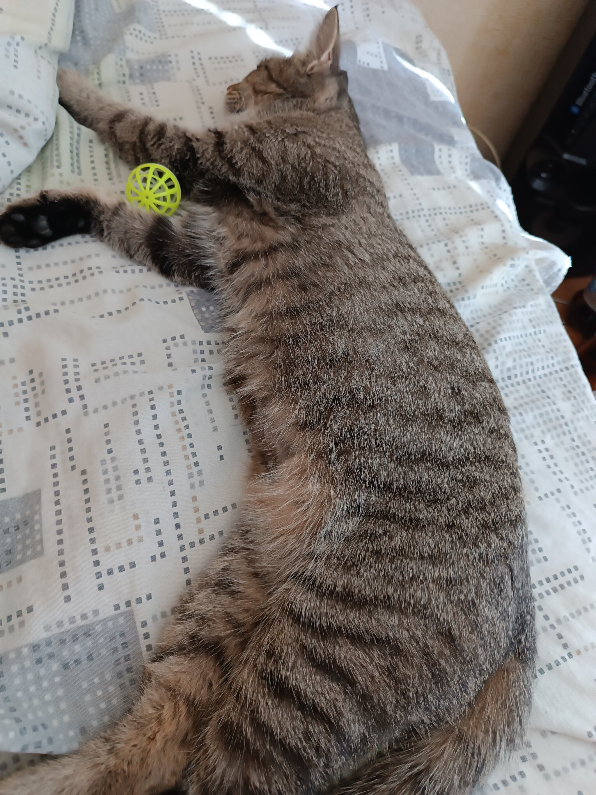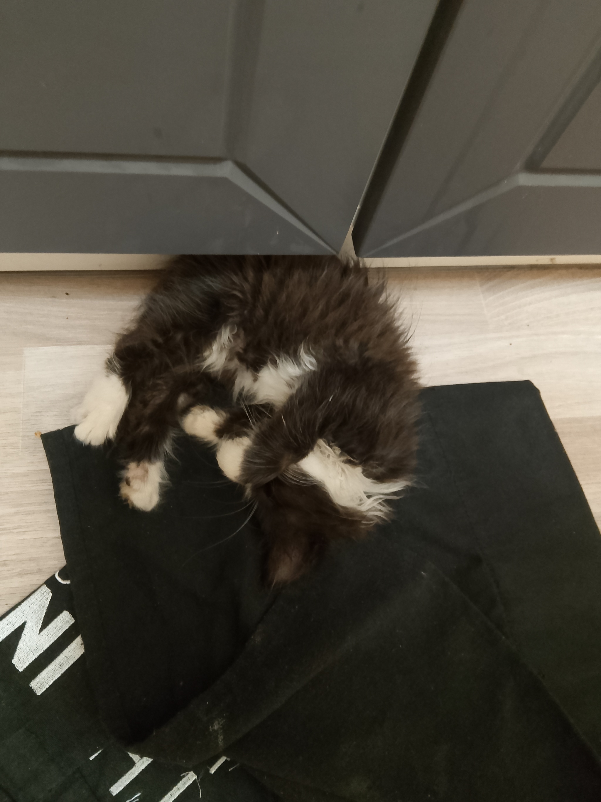 Оно моментально поняло где и что в моей квартире находится и полезло осваивать самые мягкие места- в шкаф с вещами. Это, конечно, проявление испуга, но я легко вошёл в доверие, кабанчиком метнулся по магазинам, купил кормульки разные, миски, туалет и игрушки. По какой причине чудо сразу улеглось на чемодан я не знаю. Может в другой город свалить желание показало.