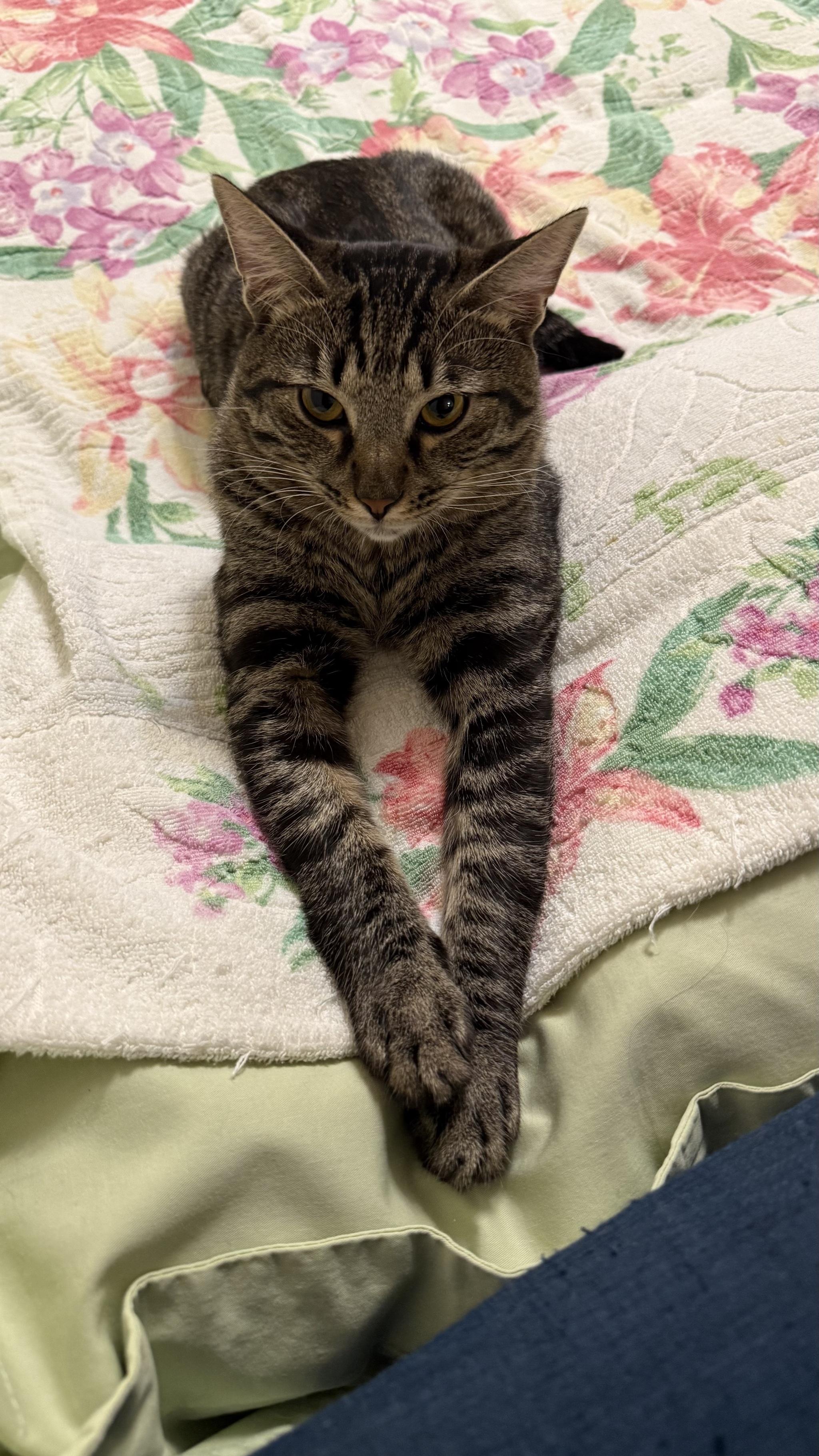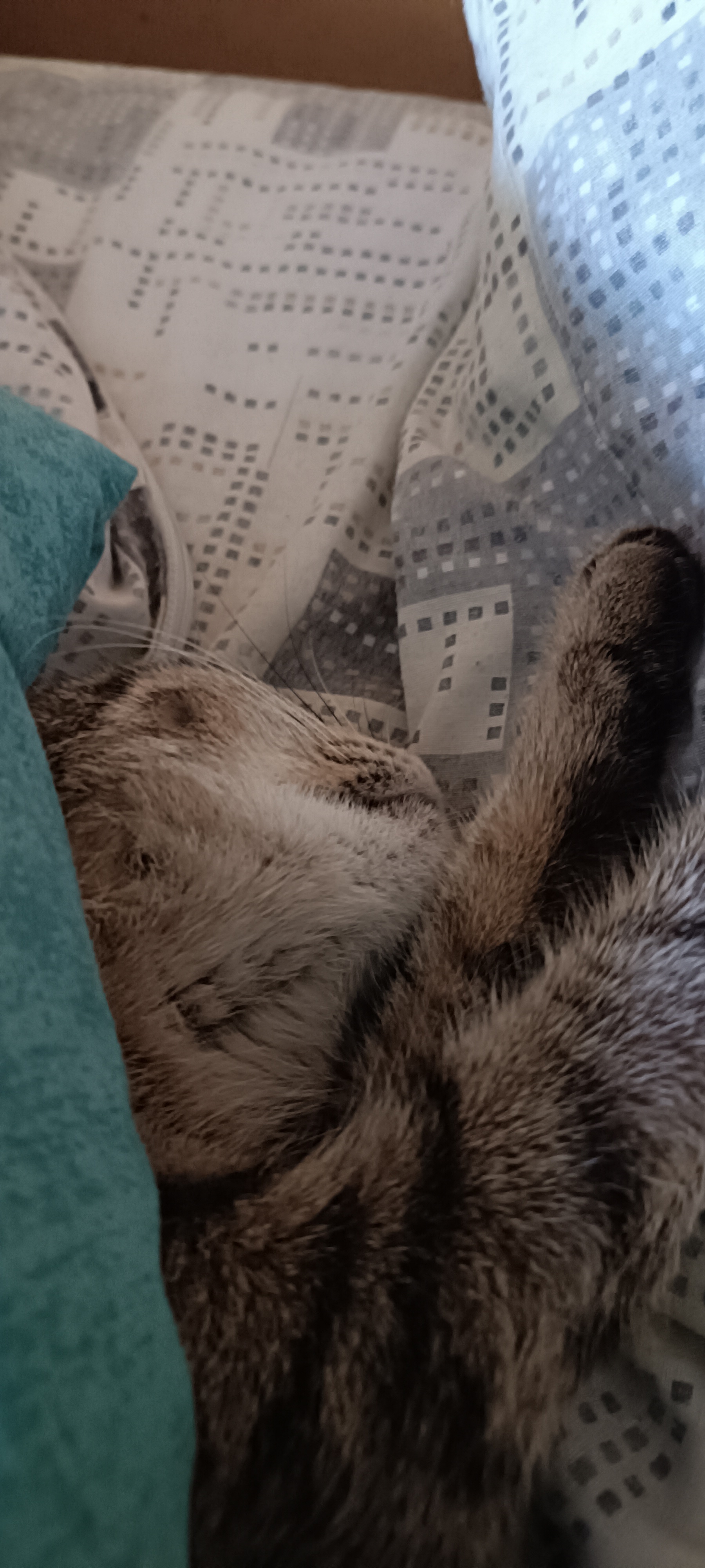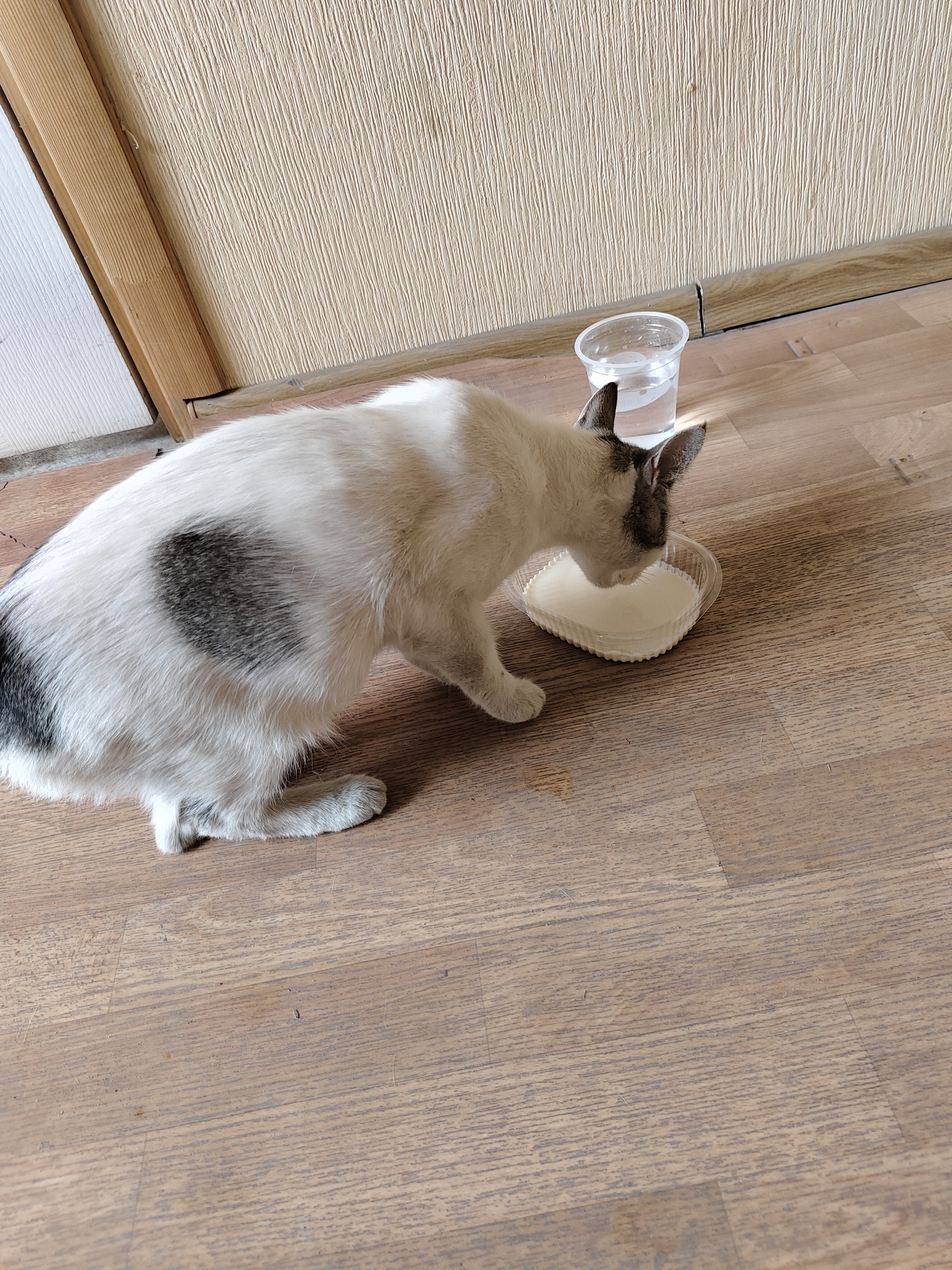 Минут через 10 чудо вышло и я заманил его на кухню покушать. Чудо ело жадно, но мало. Воды совсем каплю выпило. Это чудо- кошка. Она после операции по стерилизации. На животе небольшой шов и ещё шовная лигатура присутствует. Судя по отросшей шерстке на животе в месте оперативного вмешательства - после операции она недели полторы. Шов сухой, чистый. Уши чистые. Сама вся чистенькая. Назвал ее Сонькой. Завтра идём к ветеринару думать о швах и ТД.