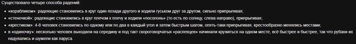 В этом первом абзаце даётся общая информация о радениях. И в проведении этих радений нет ничего необычного. У любой религиозной секты или организации есть свои праздники и правила их проведения. Единственный важный момент, который здесь можно выделить это православные песнопения. Это ещё одна вещь, связывавшая скопцов с православием. И в общем это не такая уж сильная связь. Однако она есть. Больше тут нечего сказать. Всё остальное понятно. Чуть интересней следующий абзац: