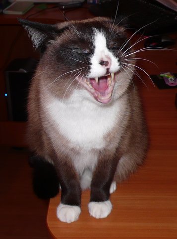 мне кажется котэ на переднем плане просто зевает, у меня тоже есть такая фотка