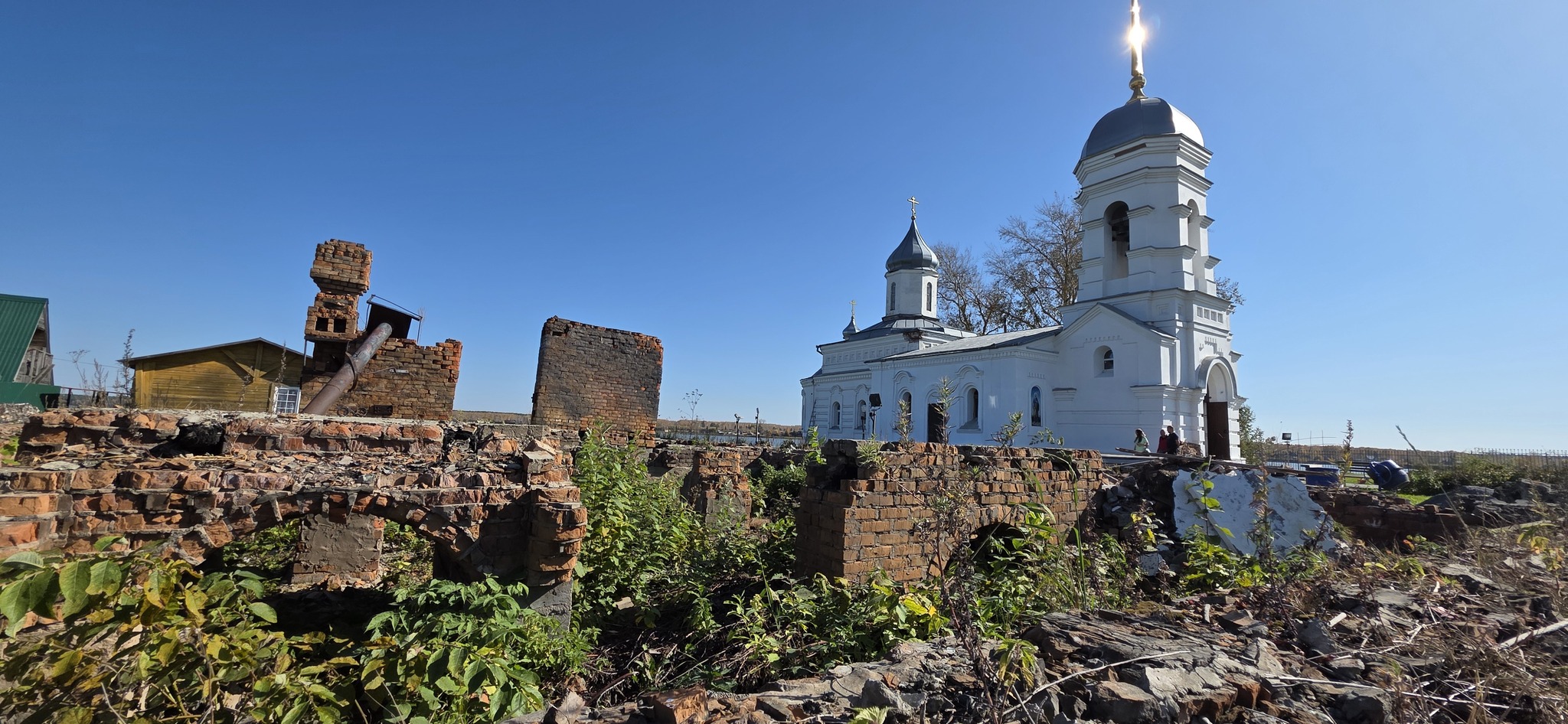 Переправа на пароме - уже приключение. Он швартуется в самой старой части села, где вас встречает белокаменная церковь Петра и Павла. Кажется, что она стоит тут с XVII века, но это - новодел 1990-х, построенный всем миром на фундаменте храма, разрушенного в 1930-е. Своды расписаны красками на основе местной цветной глины, которую копали и сушили местные жители. При восстановлении храма архитекторы оставили нетронутым фрагмент кирпичной стены у входа. Эта деталь служит наглядным напоминанием о сложном пути, который прошел храм за свою историю.