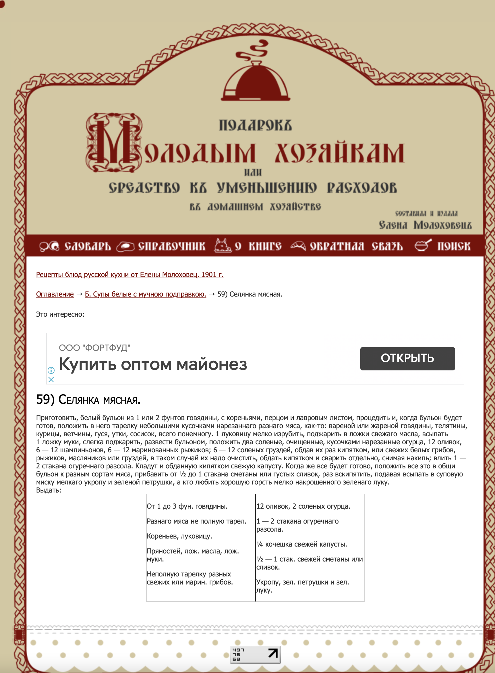 СЕлянка мясная сборная от Е. И. Молоховец