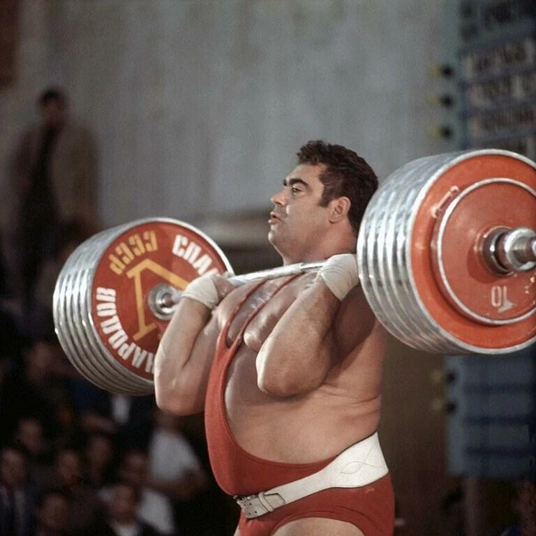На фото: Василий Алексеев толкает 235,0 кг на Спартакиаде народов СССР 1971 г.