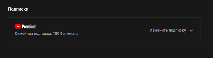 Семейная (на 6 человек) подписка youtube premium за 190 рублей в месяц, за 5 минут.