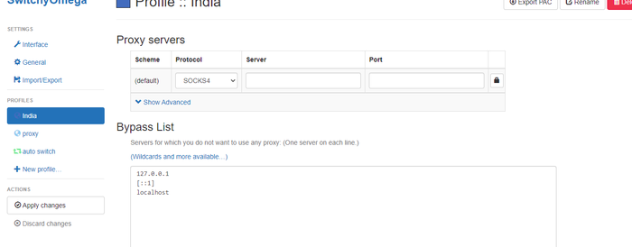 Нам понадобится прокси или VPN Индии (самый простой вариант socks прокси)