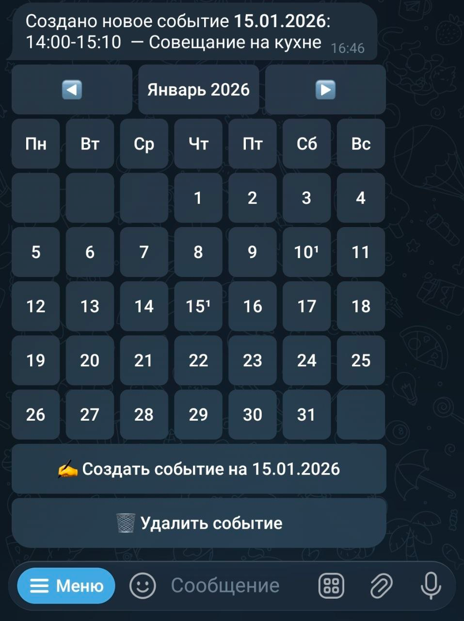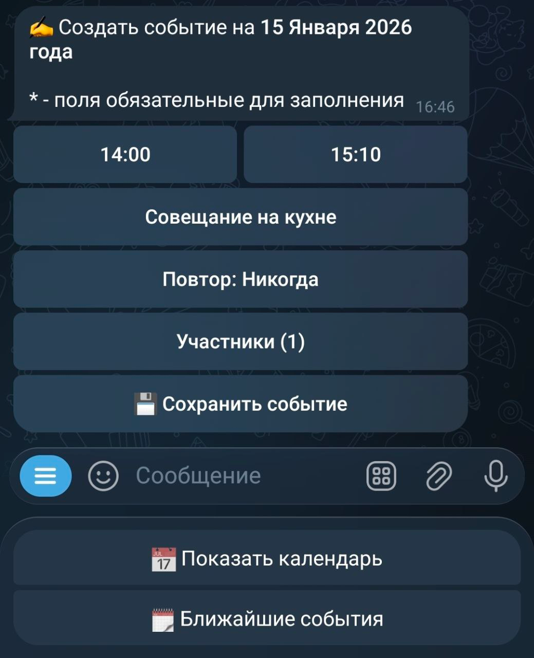 Я начал пользоваться ботом, создавал первые события, подключил к тестированию семью. Но всегда есть это гребаное "НО". Тут подтупливает, тут тормозит. Создал событие, а где уведомление? А когда пришло осознание, что бот работает только по Московскому времени, то совсем грустно стало.