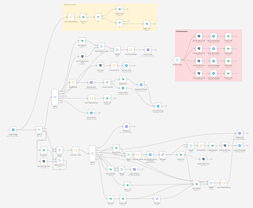 Всё начиналось с нескольких нод и с каждым днем обрастало новыми ветками. Самое главное, что бот РАБОТАЛ и выполнял основные функции: