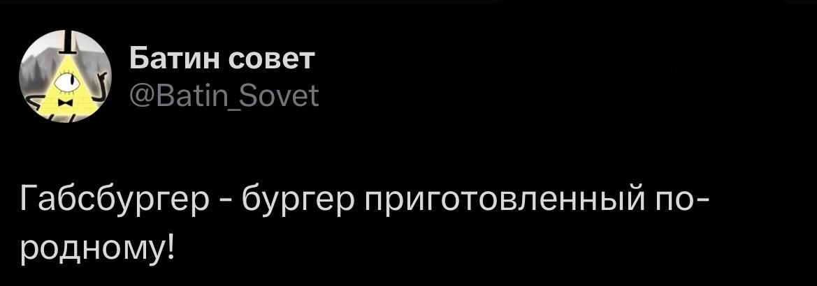 3 Dimabender 6 месяцев назад Семейный рецепт X (Twitter) Скриншот Странный юмор Игра слов Габсбурги Бургер Ещё 0