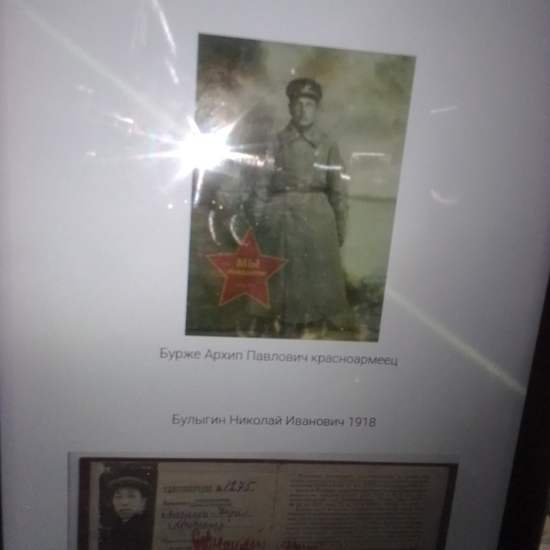 Взято с захваченного неприличным контентом ныне , сайта о пропавших без вести в ВОВ и других солдатов, деятелей того времени. Попаданец на станции Старокачаловская предьявил документ , удостоверение 1930 года, Бурже Архип Павлович .