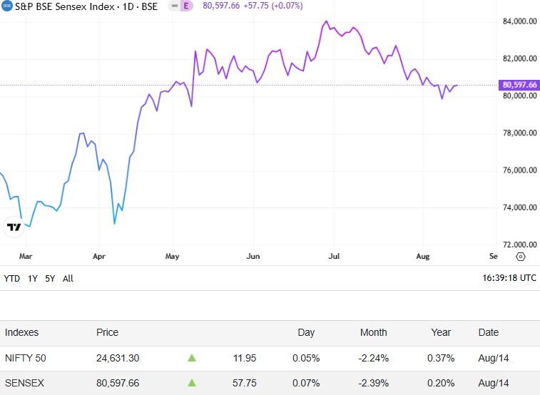 Между тем, индийские фондовые рынки останутся закрытыми в пятницу, 15 августа в связи с Днем независимости.