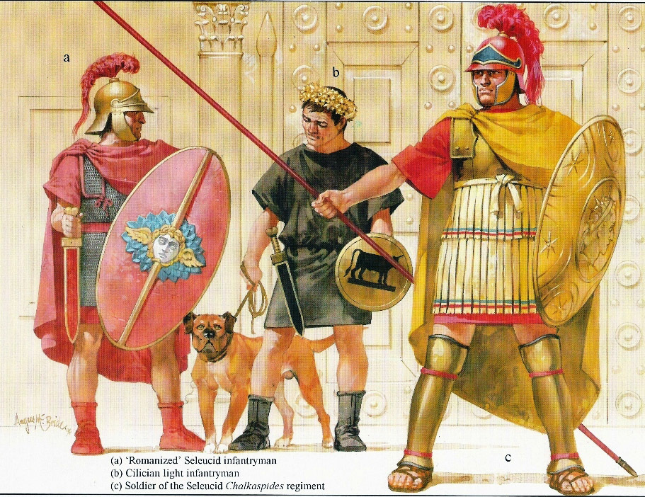 Но всё же славное имя «серебряных щитов» не кануло в Лету. После завершения войн диадохов, корпус с таким же названием появился в армии Царства Селевкидов, правители которого называли себя прямыми продолжателями дела Александра Македонского. Однако помимо названия и отличительных знаков в виде посеребрённых щитов и доспехов, у селевкидских воинов было мало общего с их македонскими предшественниками. Новый корпус насчитывал 10 000 воинов, которые скорее всего были вооружены сариссами на македонский манер. В отличии от гвардейцев Александра основу селевкидского корпуса составляли не ветераны битв, а молодые люди – набираемые преимущественно в Сирии и Месопотамии, где концентрация греко-македонского населения и была самой высокой.
