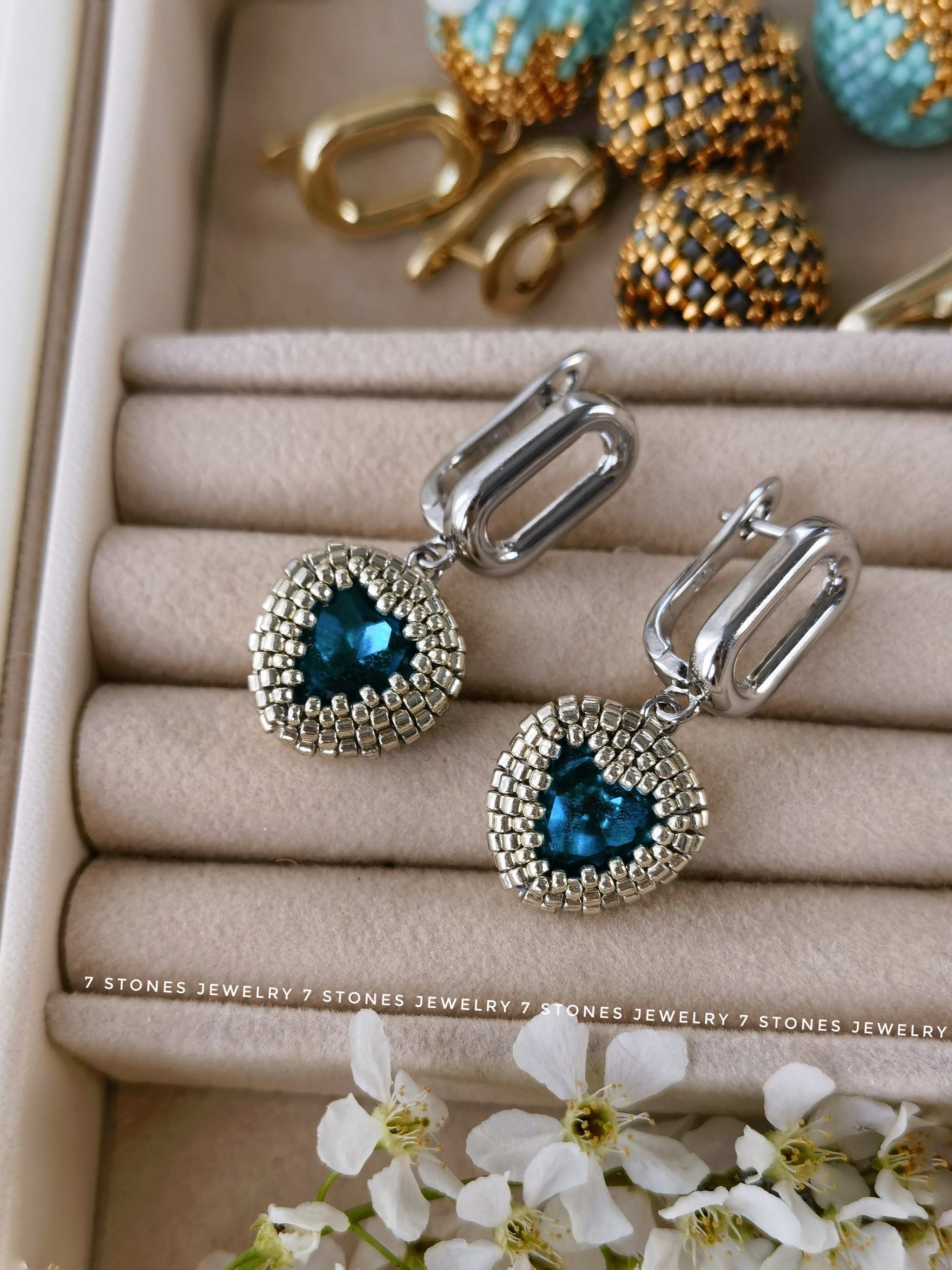 Материал: японский бисер с ювелирным покрытием 🇯🇵 , кристаллы сердечки, швензы с родиевым покрытием Южная Корея 🇰🇷