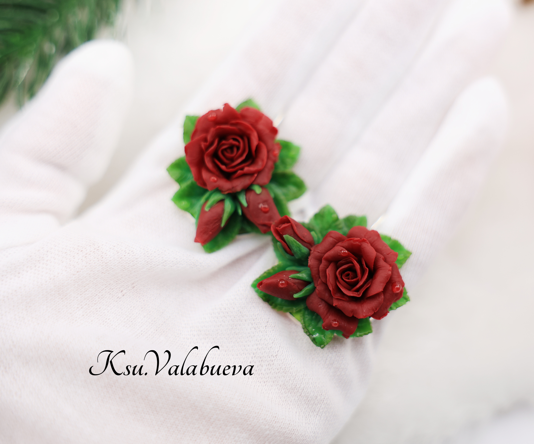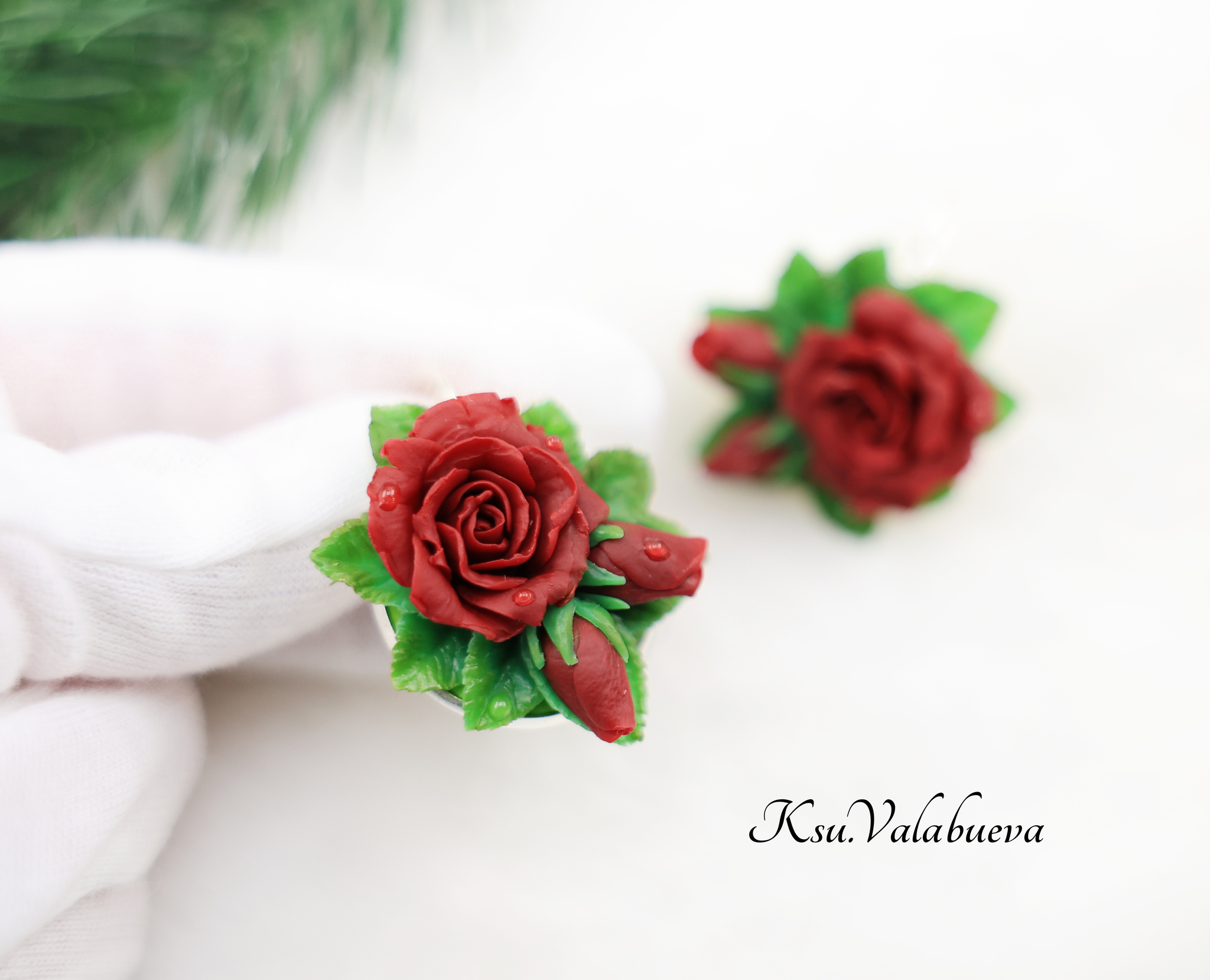 Яркие реалистичные розы, слеплены из полимерной глины.
