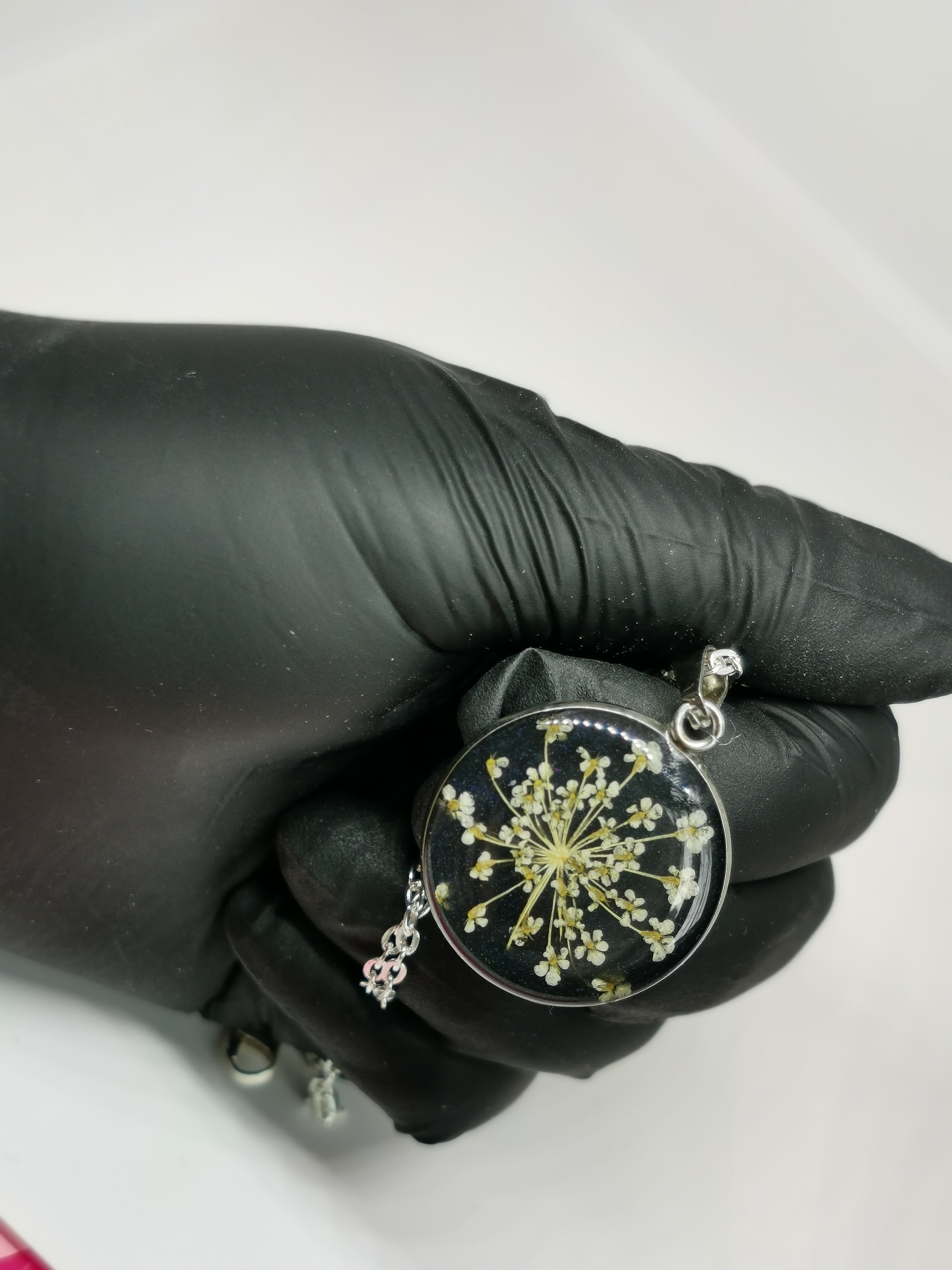 Использованы материалы:смола ювелирная эпоксидная, акриловые краски, металлическая фурнитура, сухоцветы гортензия, статице, сныть, одуванчики, ромашки)