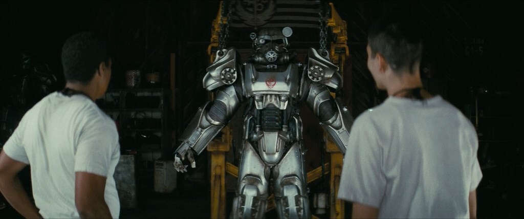 ...или на то, что силовая броня хранится в ангаре без каких-либо видимых признаков охраны. В самом деле – ну кому она на Пустошах может понадобиться, кроме Братства Стали? Запирать ангар с помощью кодовых терминалов или сложных замков, как в игре? Да ладно, хорош ерундой заниматься. Распахнём двери ангара пошире, приобщим, так сказать, местное население к довоенной культуре.