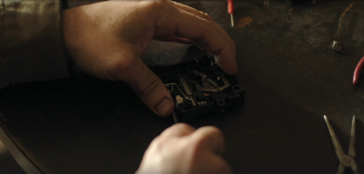 Одним их первых кадров. Джоил сидит и чинит какую-то ерунду. По ходу о сообщает, что сломалось и это хотели выкинуть на помойку.