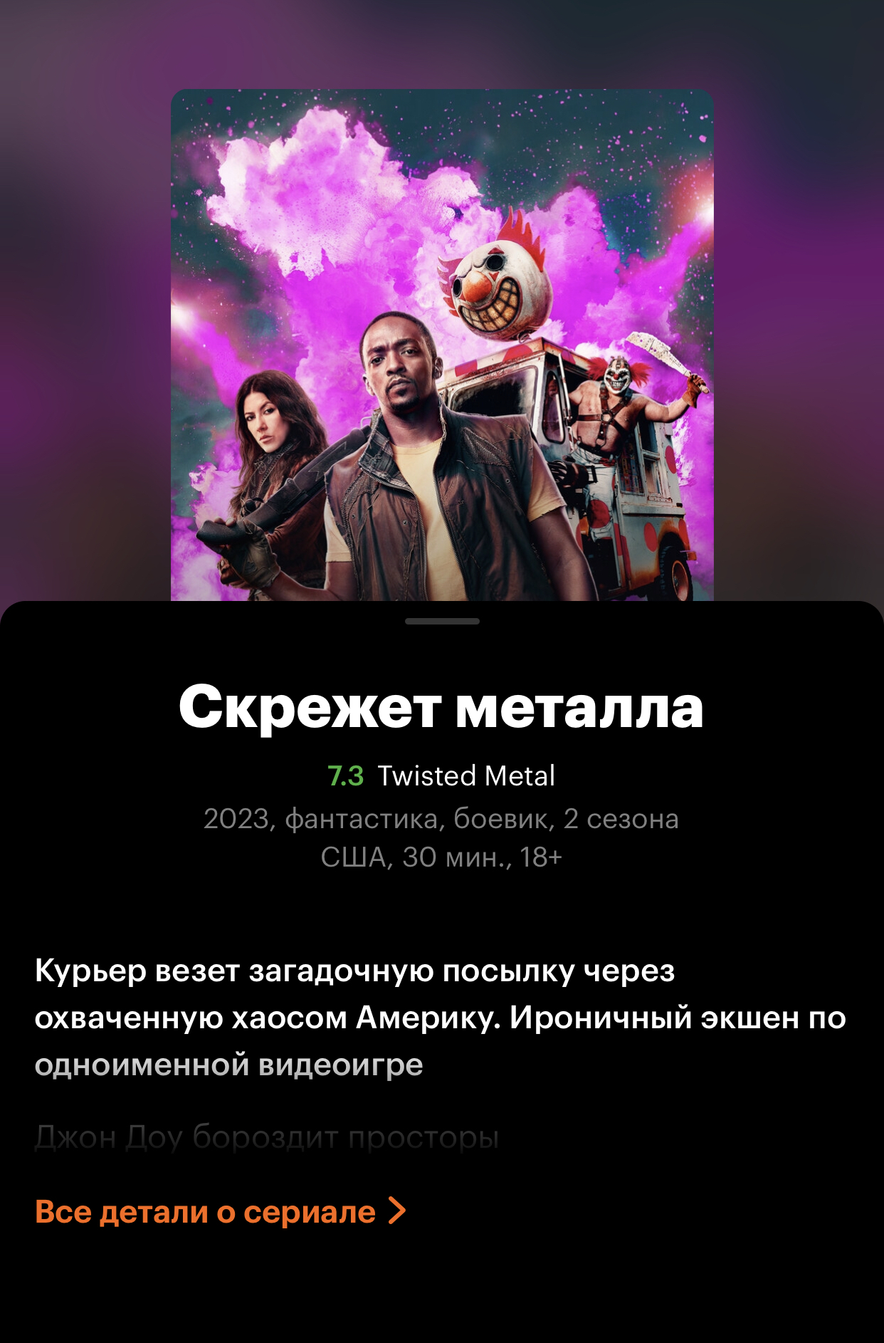 Скрежет металла (Twisted Metal) от Peacock, 1 сезон. 2023г. Продлен на 2 сезон.