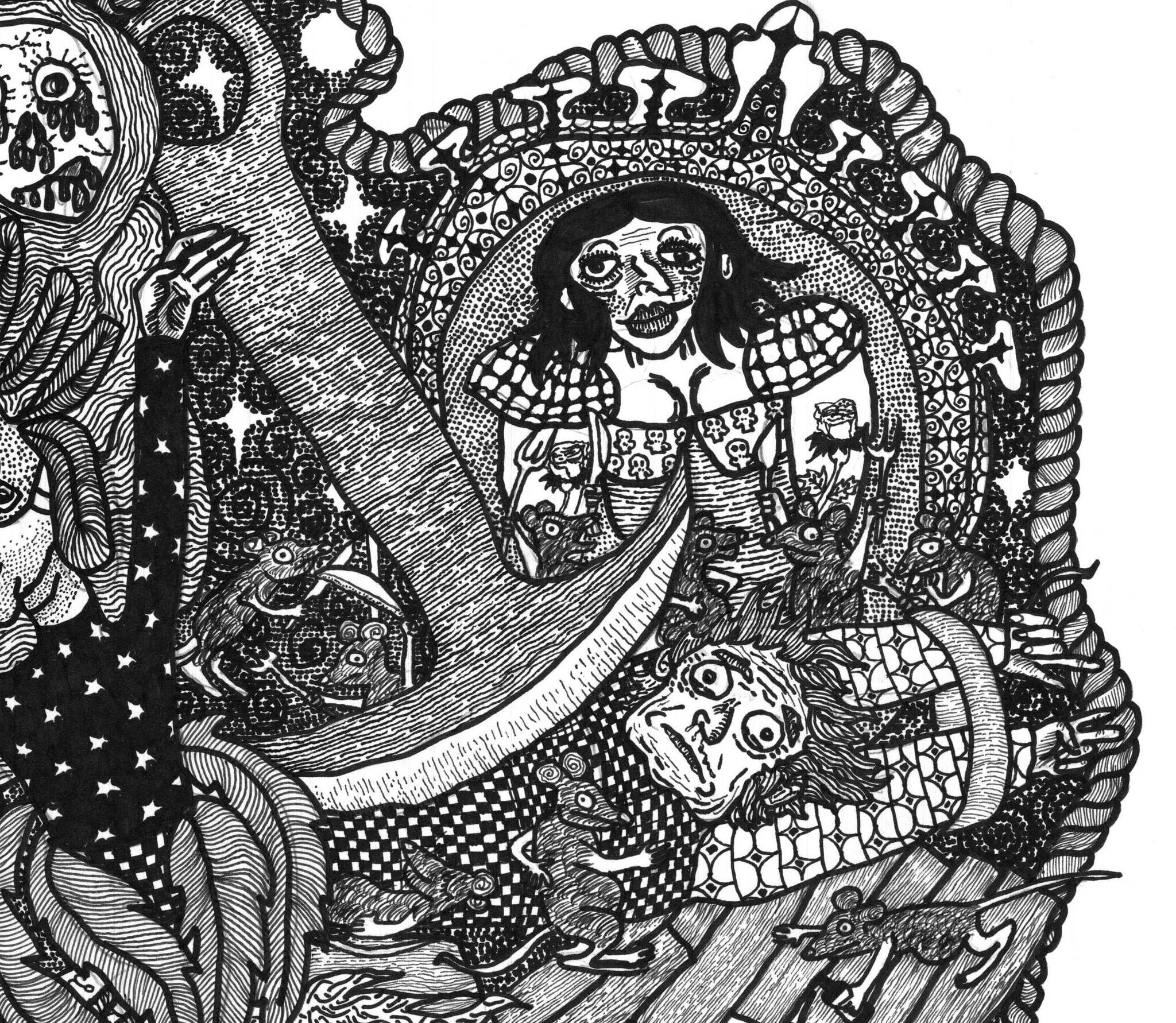 Серия "Литературное". Эдгар По. Маркер, линер, 109 на 84 см, 2023. Рисовал долго. Старался. Эдгар По! Рассказы! Часть IV.