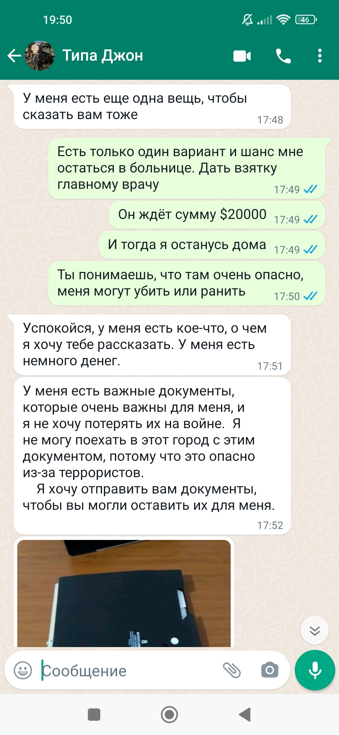 Что ж, мёд повел себя, как герой. Он готов отправить мне все деньги и документы, чтобы меня не забрали на фронт. Прям греет душу и сердце