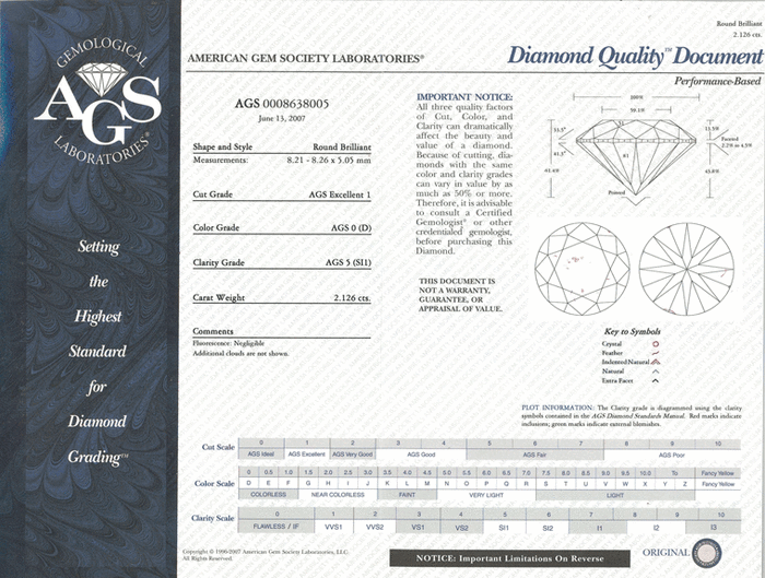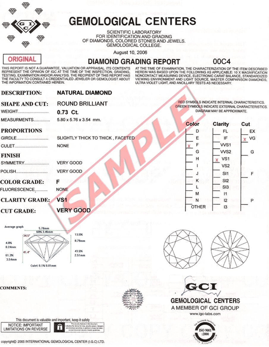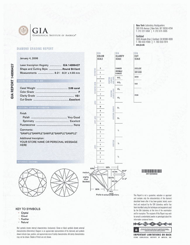 Рассмотрев множество сертификатов можно сделать вывод что самую достоверную информацию о бриллианте расскажет сертификат GIA - Геммологического Института Америки. Давайте же подробнее рассмотрим данный сертификат.