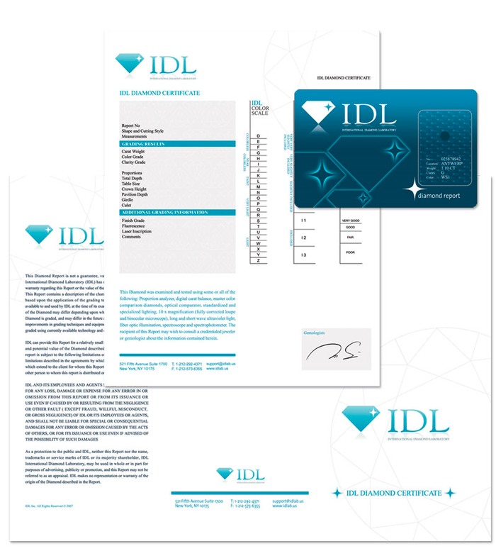 В большинстве случаев, для бриллиантов документами третьего уровня будут являться уже не сертификаты, а оценочные заключения (appraisal). Если сертификат - это научное исследование бриллианта; в нем содержится оценка цвета, чистоты, физических размеров и веса, а так же некоторых других параметров, то оценочные заключения ориентированы на коммерческую сторону вопроса. Оценка в данном случае сильно варьируется от того: кто, зачем и где заказал ту или иную оценочную экспертизу. Стоит отметить, что бриллианты, укомплектованные оценочными экспертными заключениями, на биржевом уровне торговли хождения не имеют. Исключение составляет сертификаты IGI, оценочную стоимость которых, впрочем, редко воспринимают всерьез. В основном оценочные заключения используются для торговли на интернет-аукционах, в комиссионных магазинах и ломбардах. В среднем, цена в подобных бумагах, с учетом тотального завышения характеристик, превышает рыночную в 2-4 раза. Аббревиатуры оценщиков весьма похожи на крупные геммологические лаборатории. Например, появившийся в 2014 году оценочный репорт GIE (Gemological Institute of Europe) - грубо мимикрирует под лабораторию GIA. Наиболее часто встречаются: IGL (International Gemological Laboratory), IDL(International Diamond Laboratory), EGS (European Gemological Services), GemScan, GLI (Gem Lab International). Относительно безопасная зона: бриллианты стоимостью до 1000$, низких характеристик M-Z/I1-I3.