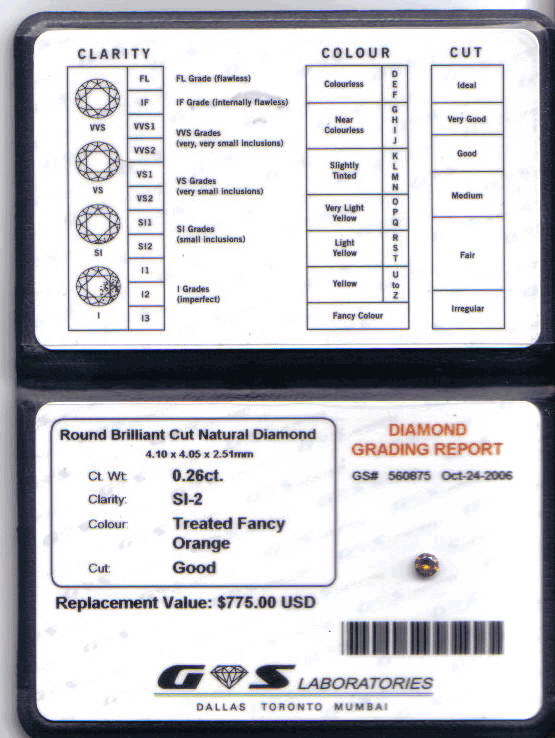 Комментарии: Есть прецеденты завышения цвета и чистоты бриллианта.
