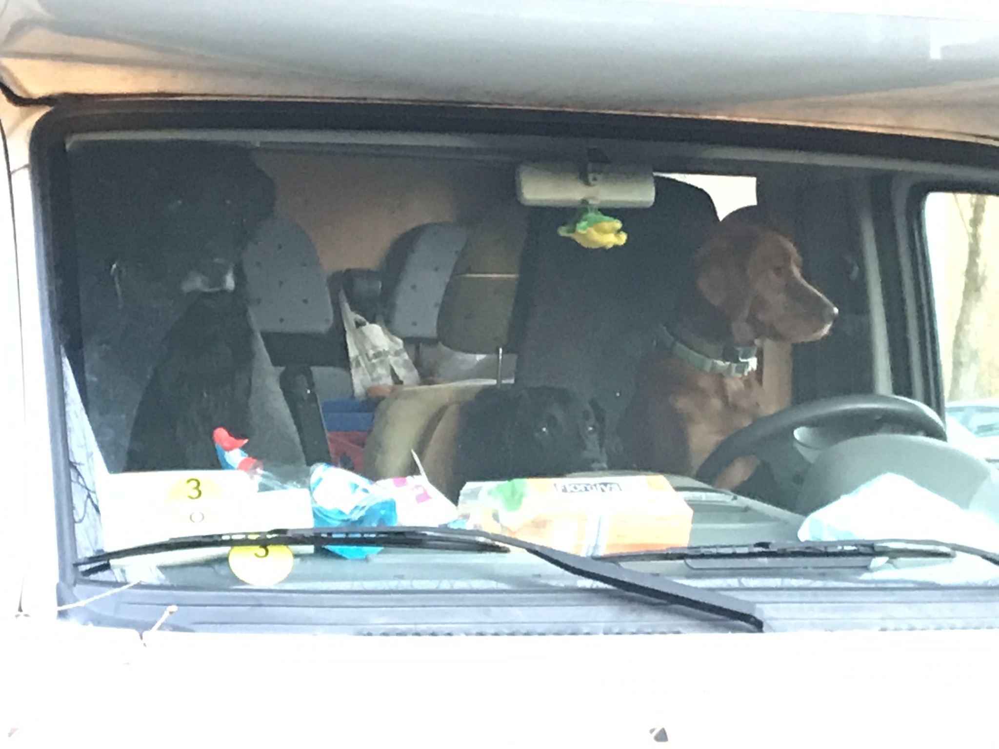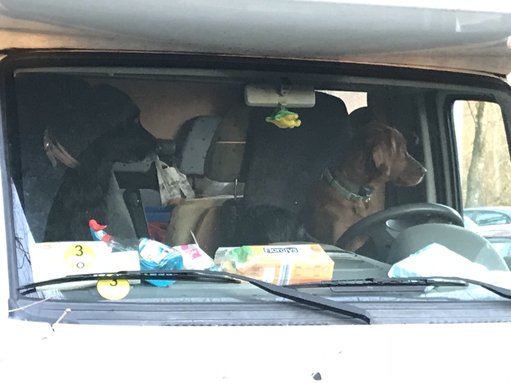 На парковке, в автокемпере сидела такая серьёзная семья.