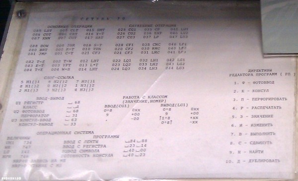 Николай Брусенцов: Видимо, для того, чтобы удаленность от сервисного центра и разброс климатических зон максимально выявили конструктивные недочеты. Но вся штука в том, что их практически не было. «Сетунь» была очень простой машиной. Я, как инженер, считаю, что простота вещи — это главное ее качество. В природе все то, что удалось ей выработать в простой форме, оказывается самым надежным, самым устойчивым. География обитания «Сетуни»: Якутск, Иркутск, Красноярск, Душанбе, Ашхабад, Махачкала, Калининград и т. д. Причем часто она попадала к людям, которые впервые видели цифровую технику. И несмотря на это, практически всюду машина нашла существенное применение. В Якутске «Сетунь» была в астрофизическом институте. У них была какая-то сложная задача, которую они в течение двух лет не могли поставить на большой машине «Урал-2». Потом кто-то сказал: „Давайте попробуем на «Сетуни»”. Все решили, что это шутка. Однако через полтора месяца задача была решена. Дело в том, что «Сетунь» была естественной машиной. Там нет этого идиотского дополнительного кода для отрицательных чисел. И положительные, и отрицательные числа задаются естественно. Потом всего 24 команды. Освоить такую машину и программировать в машинном коде было ничуть не сложнее, чем, скажем, осваивать «Алгол» или «Фортран».